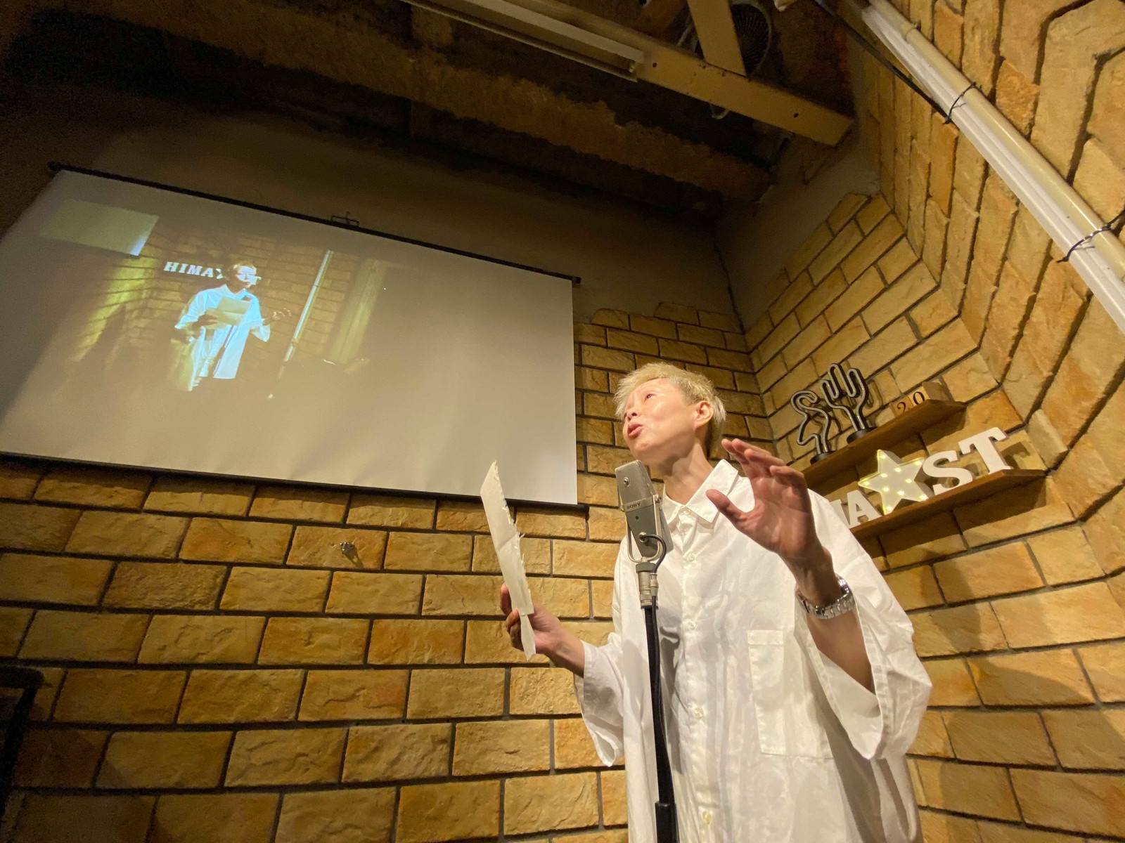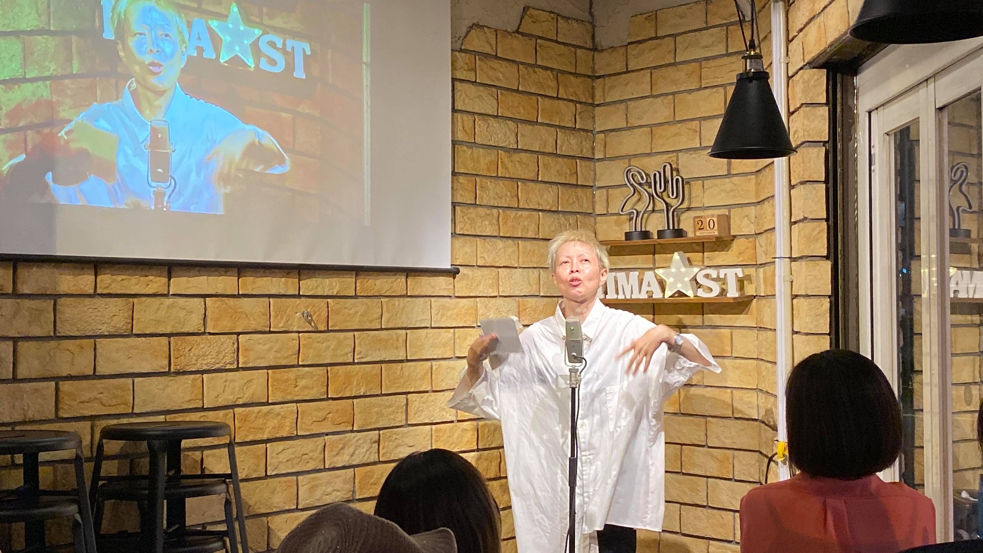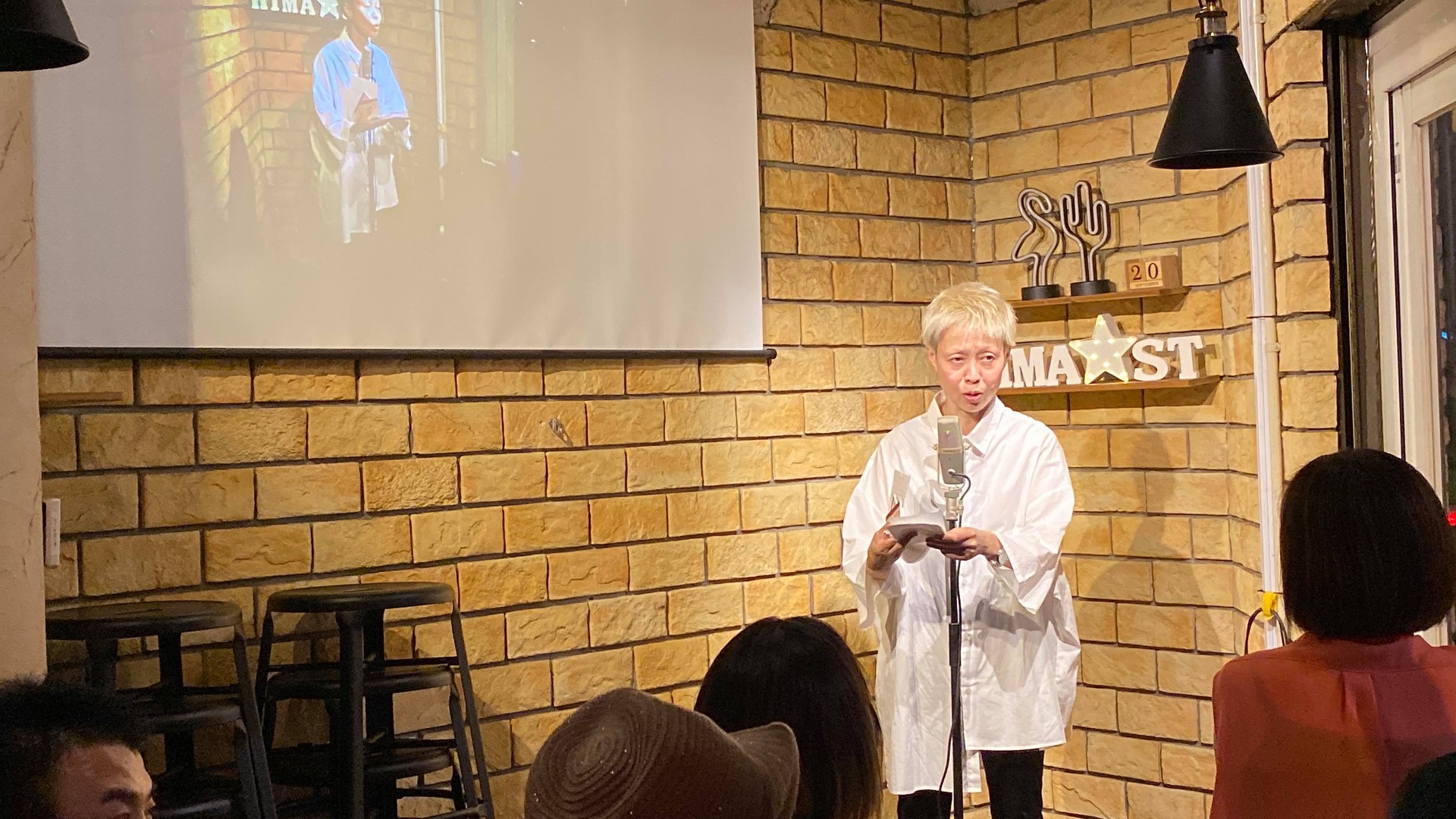 驚いたのがこれ!ステージとプロジェクター画面が両方写っているやつ。