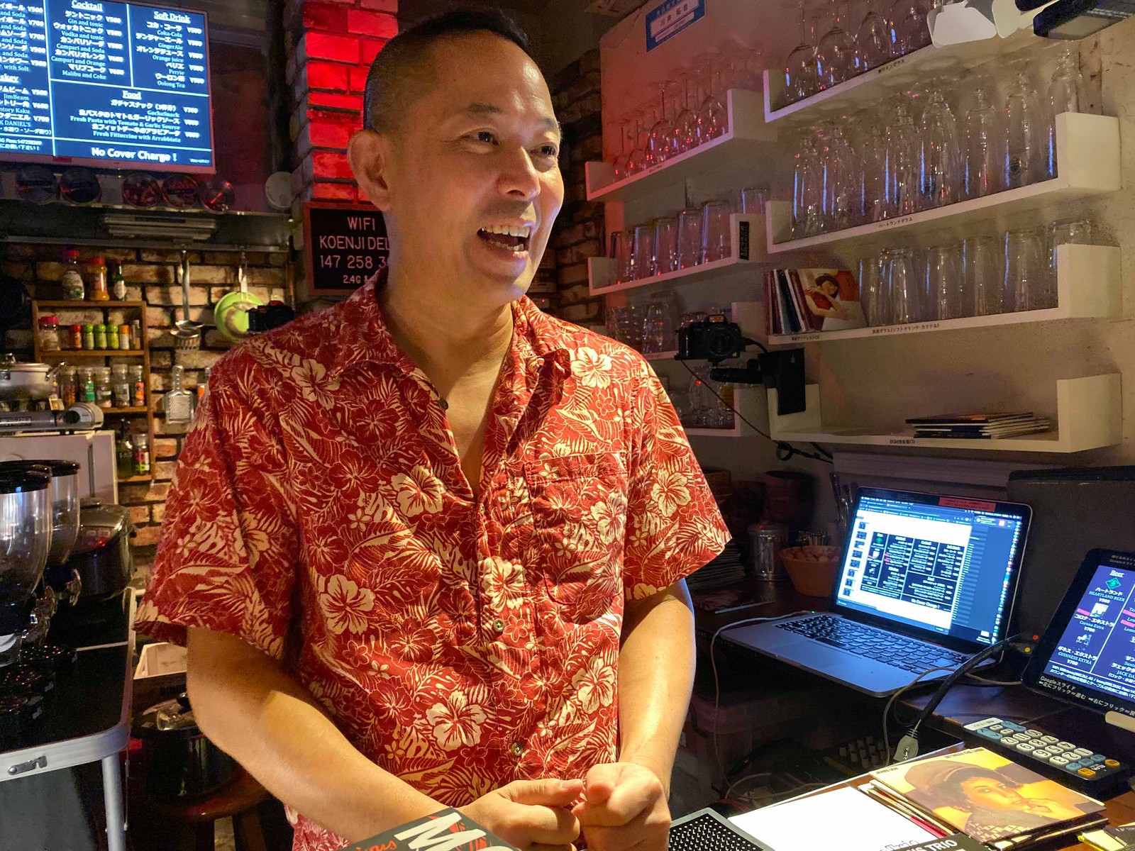 カウンターの机は実際はスポットライトでCDジャケットの一部にしか当たっていないのですが全部クッキリ見えています。見え過ぎちゃって困るの!(byマスプロアンテナ)