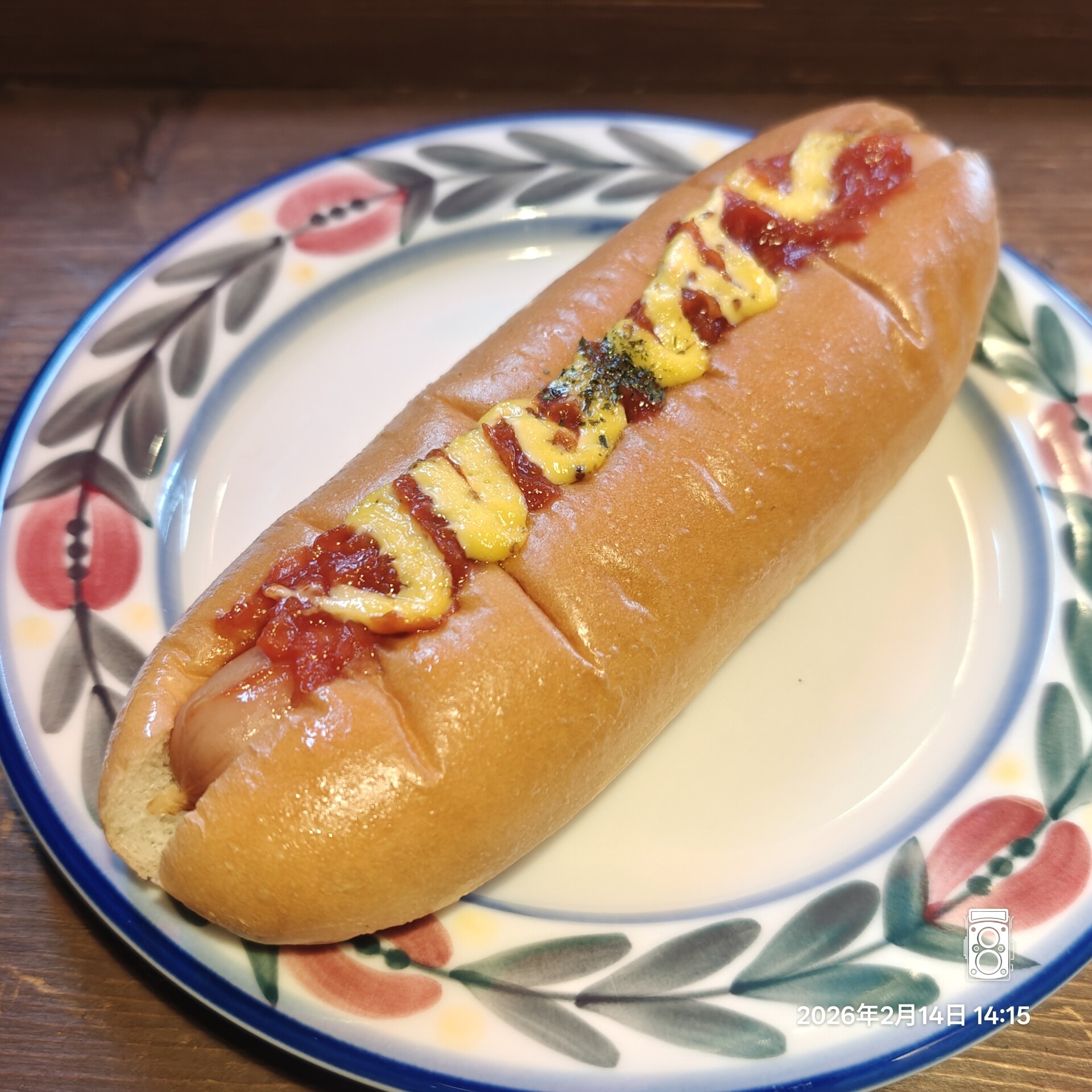 ホットドッグの方はやわらかいコッペパンにソーセージとケチャップとマスタードにバジルがひとふり。