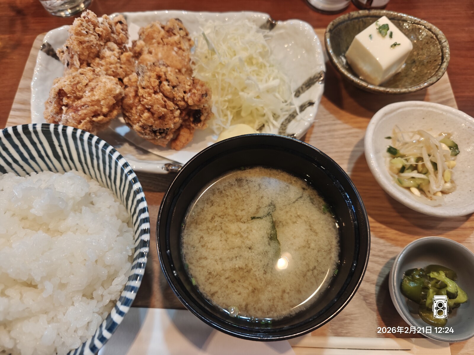 うん!美味しい!サクサク衣にジューシーな鶏肉のうまみ!小鉢も充実でいい感じ!