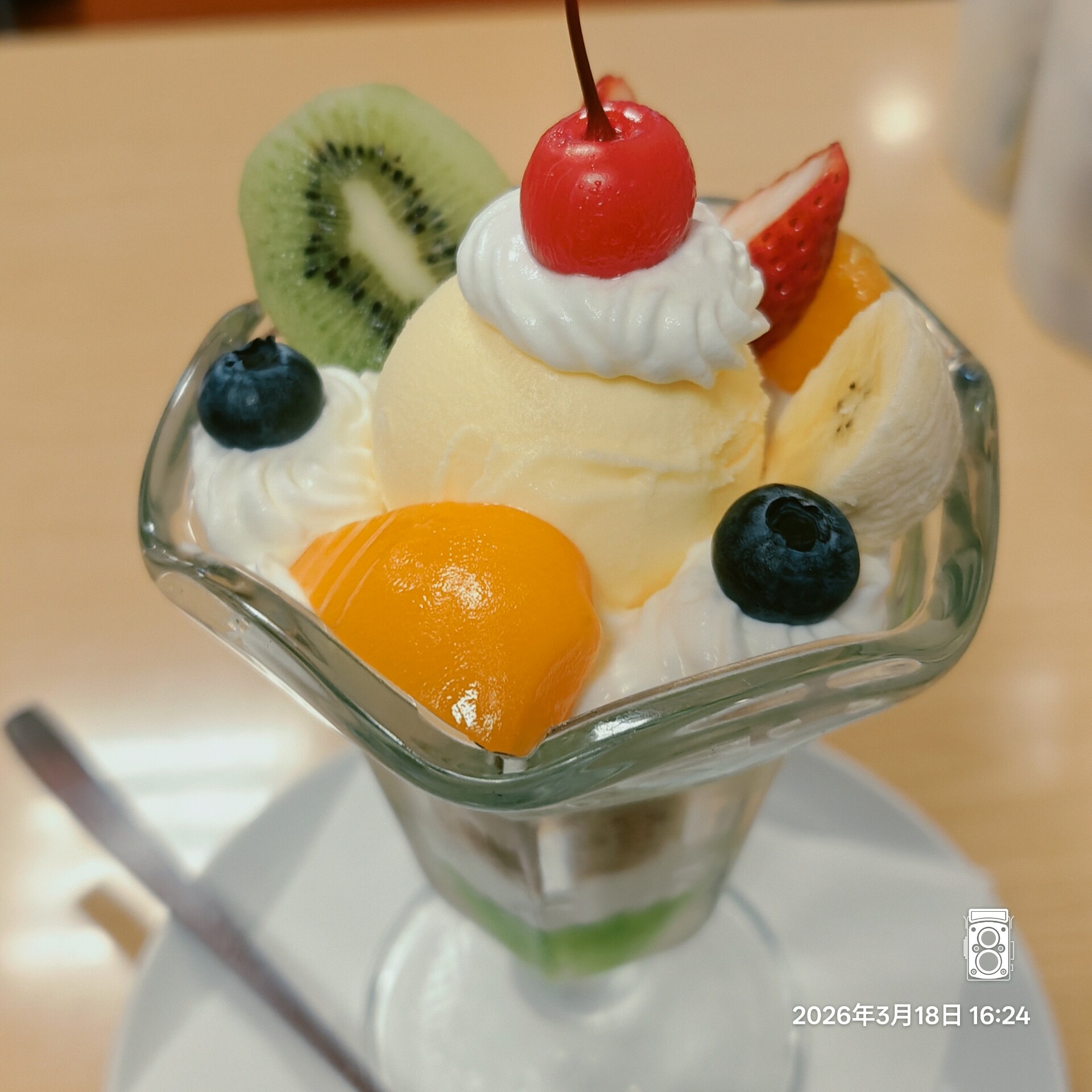 スイーツメニューは「プリンアラモード」と「フルーツパフェ」清涼感も欲しかったので「フルーツパフェ」にしました!