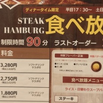 すてーき亭「ステーキ&ハンバーグ食べ放題」3600円(2026年2月)90分で56歳は何キロ食べられるか?