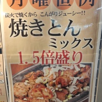 東中野大喜利「焼きとんミックス1.5倍盛り」650円(2026年1月)