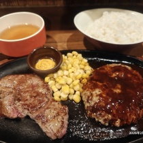 高円寺すてーき亭「1番プレートステーキ85g+ハンバーグ150g」1320円(2026年1月)